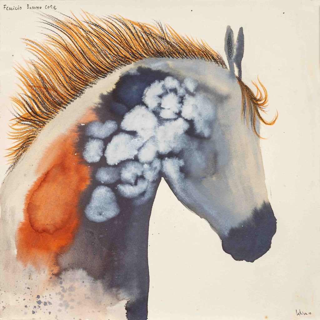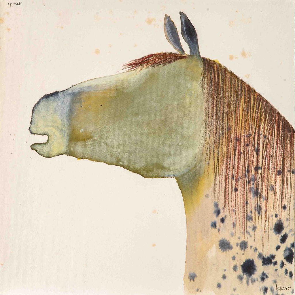 Denis Riva, Spivak, 2022. China, pastello e lievito madre su carta, cm 30×30 cm. Serie cavalli celebri. Courtesy zanzara arte contemporanea.